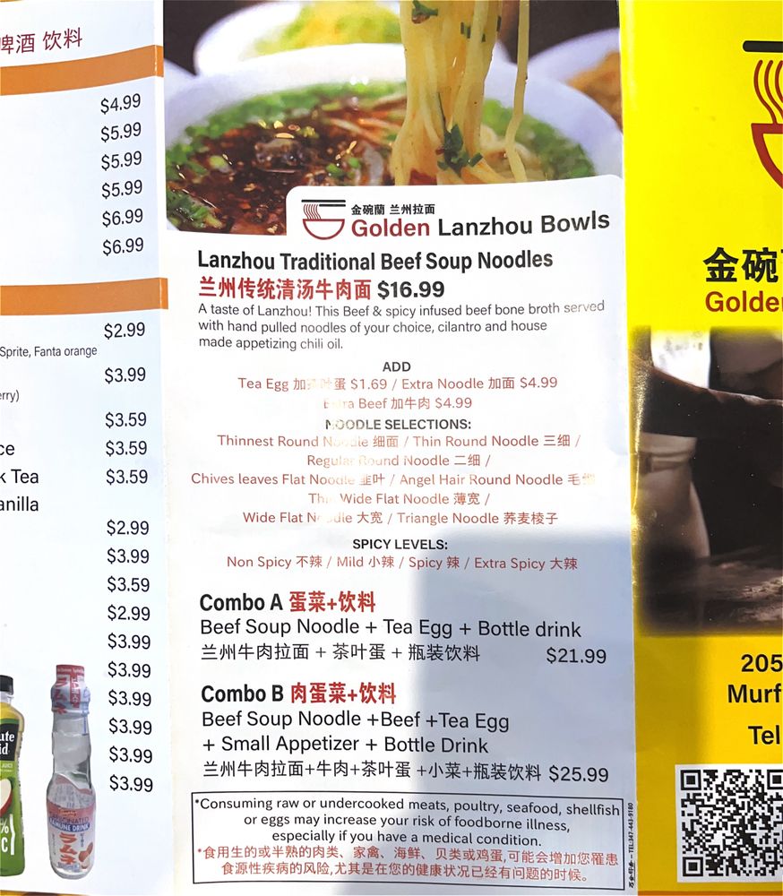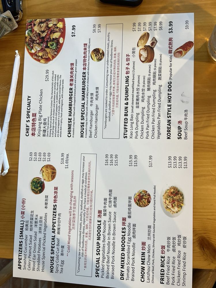 A taste of Lanzhou, this beef & spicy infused beef bone broth served with hand pulled noodles of your choice, cilantro and house-made appetizing chili oil.