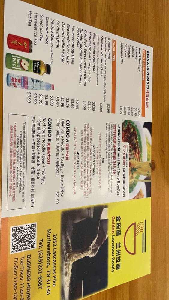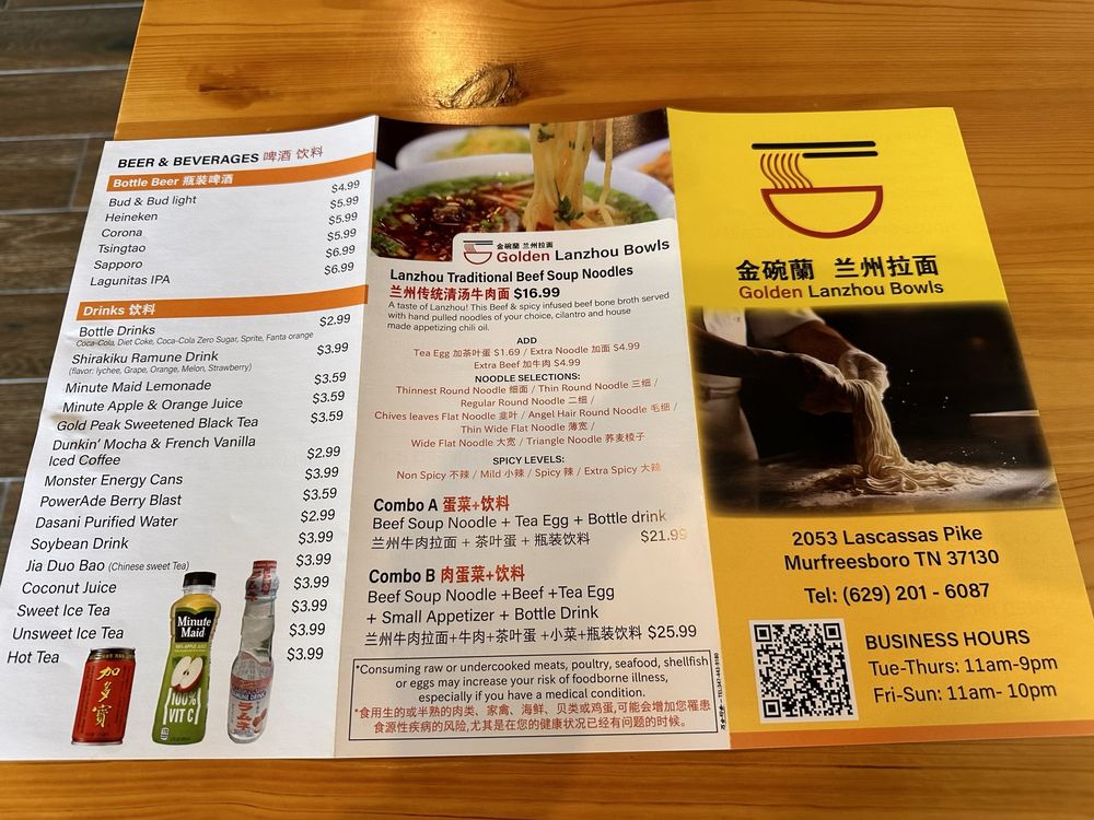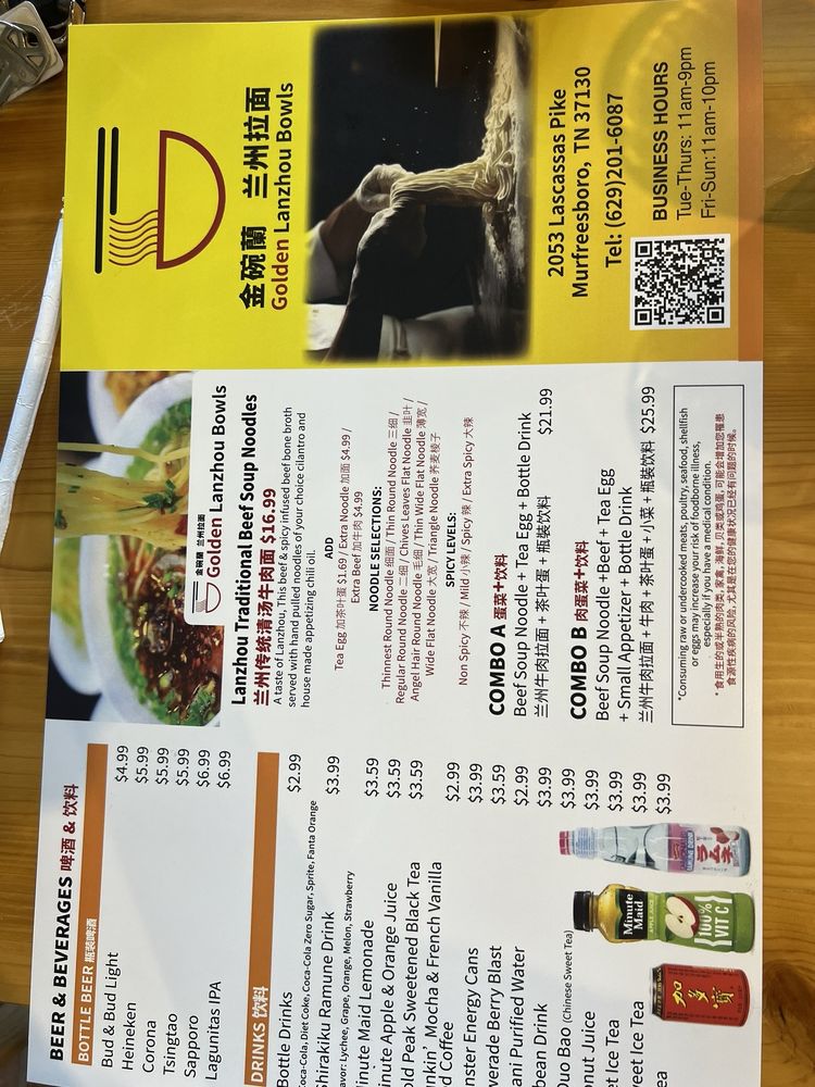 Golden Lanzhou Bowls offers authentic Chinese cuisine in Murfreesboro, TN. Known for their flavorful noodle dishes, customers rave about the soup dumplings, Chinese hamburger, and beef noodle soup. The menu features a variety of appetizers like cucumber and potato dishes, along with a range of noodle types to choose from. Customers appreciate the generous portions and friendly service, making it a must-visit spot for Chinese food enthusiasts. With a focus on traditional Lanzhou-style beef noodle soup and handmade dumplings, Golden Lanzhou Bowls delivers a satisfying dining experience. The cozy atmosphere and attentive staff add to the overall enjoyment of the meal. The restaurant may be tucked away in a plaza, but the quality of the food stands out, making it a hidden gem worth exploring.