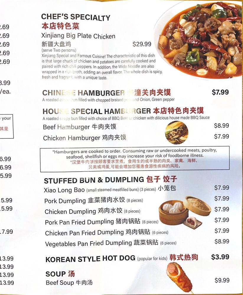 (Serve two persons) Xinjiang special and famous cuisine! The characteristic of this dish is that large chuck of chicken and potatoes are carefully cooked and paired with rich chili peppers. In addition, the wide noodle are also wrapped in a rich broth, adding an overall flavor. The whole dish is spicy, fresh and fragrant, with a unique taste.
